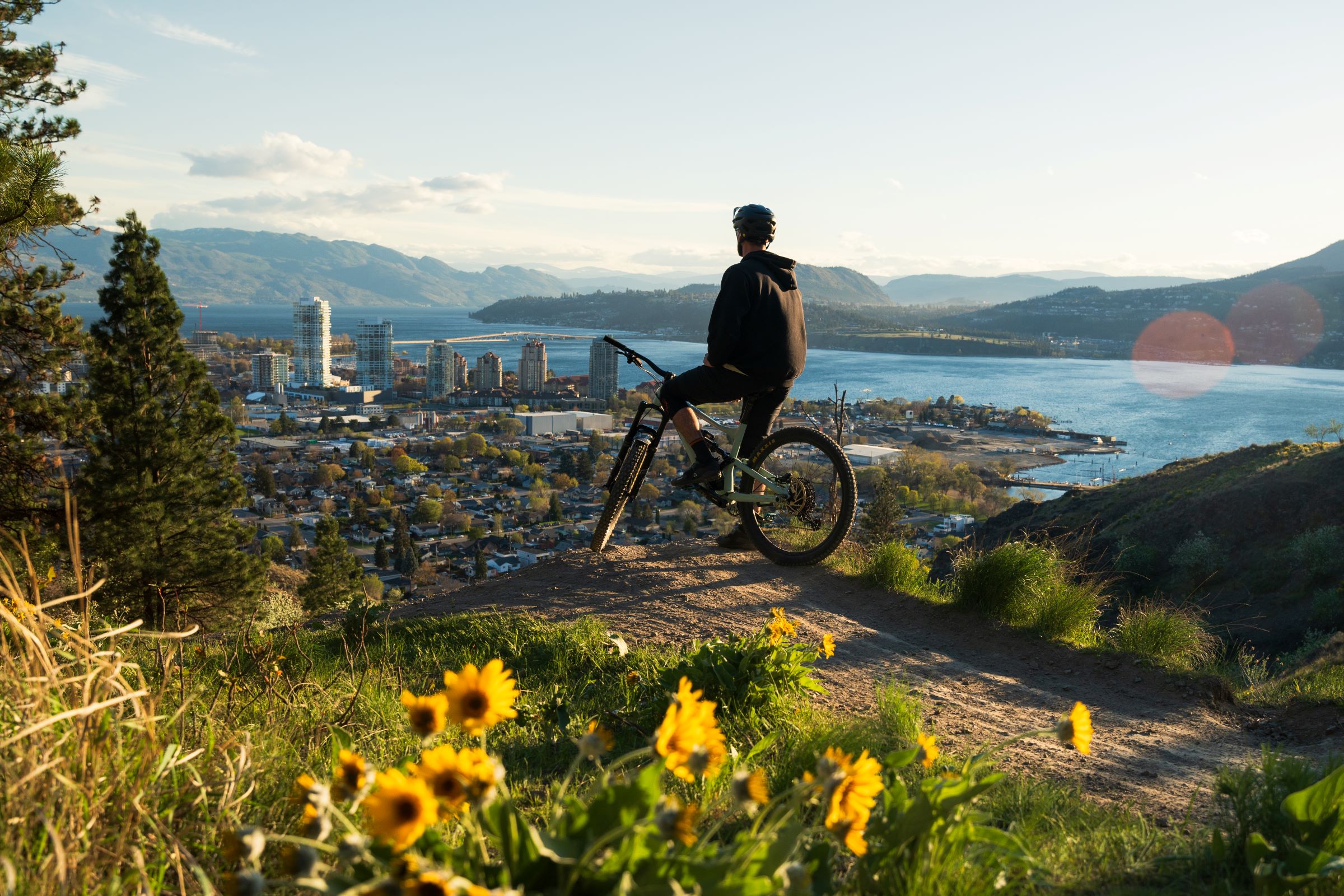 Cycling past vineyards on the Kettle Valley Railway between Penticton and Naramata Entree Canada