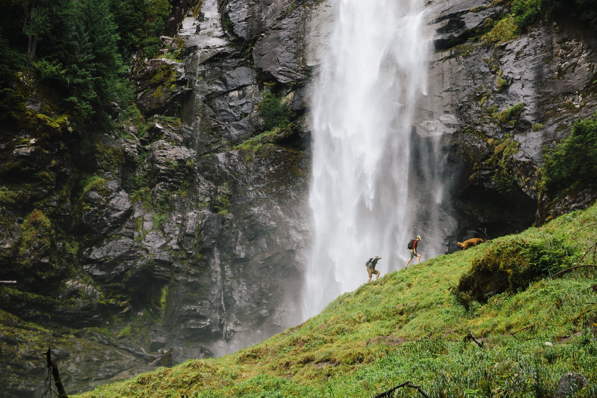 Am Ende des Weges hast du einen wunderschönen Blick auf den zweistufigen Wasserfall. Der Tümpel am Fuße des Wasserfalls ist ein fantastisches Angelrevier für Äschen, und im Spätsommer wird hier das Fliegenfischen empfohlen.