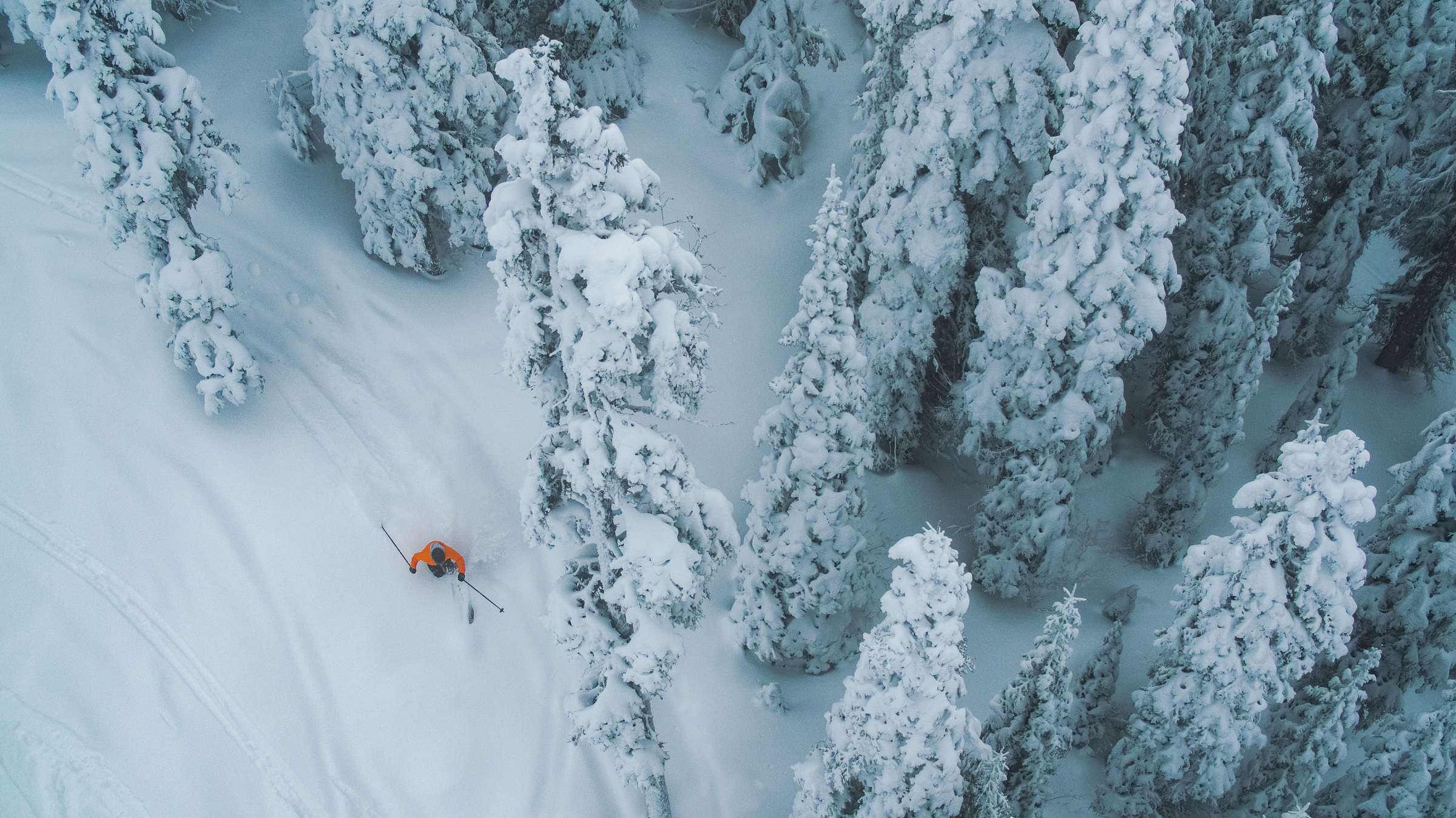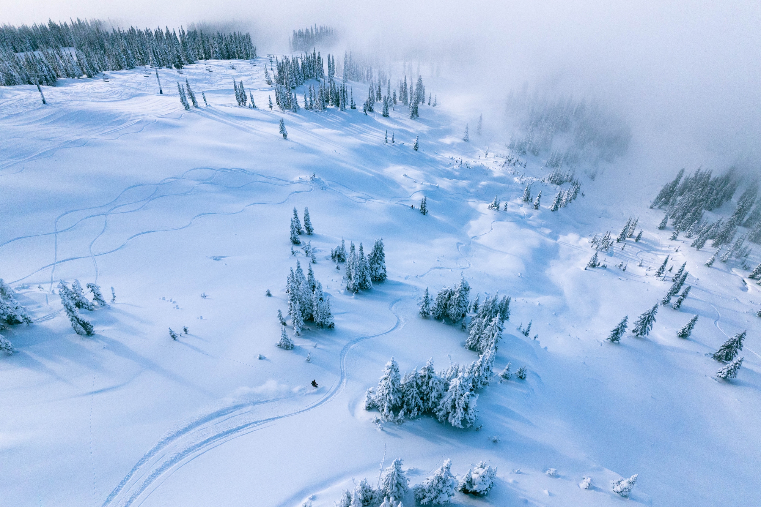 Aerial shot of tree skiing at Sun Peaks Resort Ski Resorts