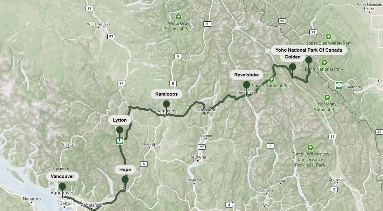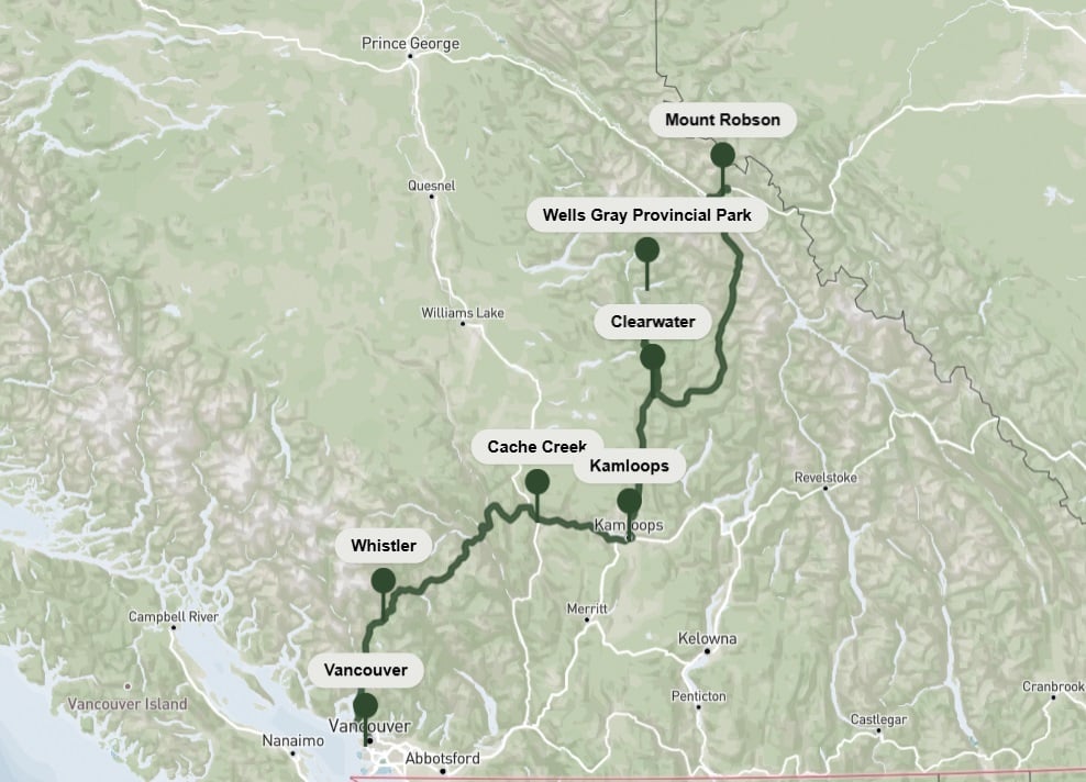 Podría decirse que el viaje por carretera más emblemático de Columbia Británica es el trayecto desde Vancouver a las Montañas Rocosas. El recorrido ofrece paisajes en constante cambio y algunos de los paisajes más bellos de la provincia. Y, si tienes suerte, podrás avistar osos, ciervos, alces, borregos cimarrones, cabras montesas y mucho más.