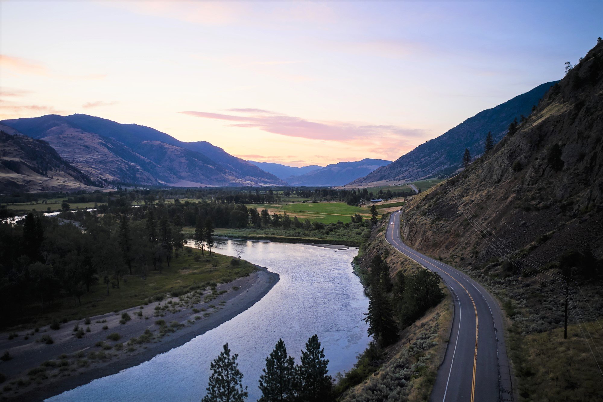 Viaje por carretera por la autopista Crowsnest al atardecer. Reduce la velocidad a lo largo de la Transcanadiense.