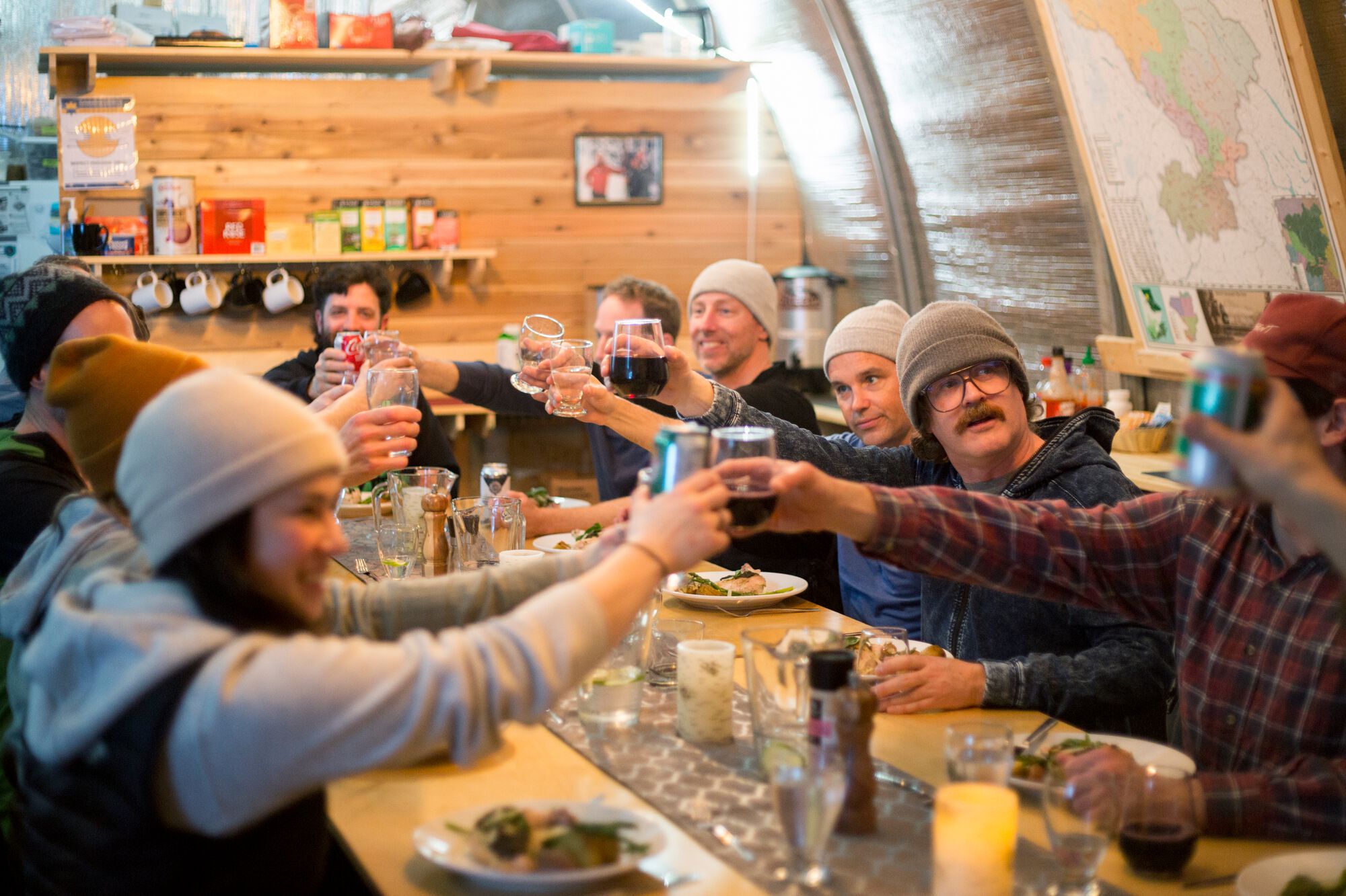 Over three days, my friends and I ski some of the deepest snow of the season in between cat rides punctuated with tales of the last run: tumbles, airtime, and face shots. Part of the excitement of cat skiing is not only the experience, but sharing it with each other in the cat or at the end of the day back in the lodge, or in this case Quonset, in the mountains.
